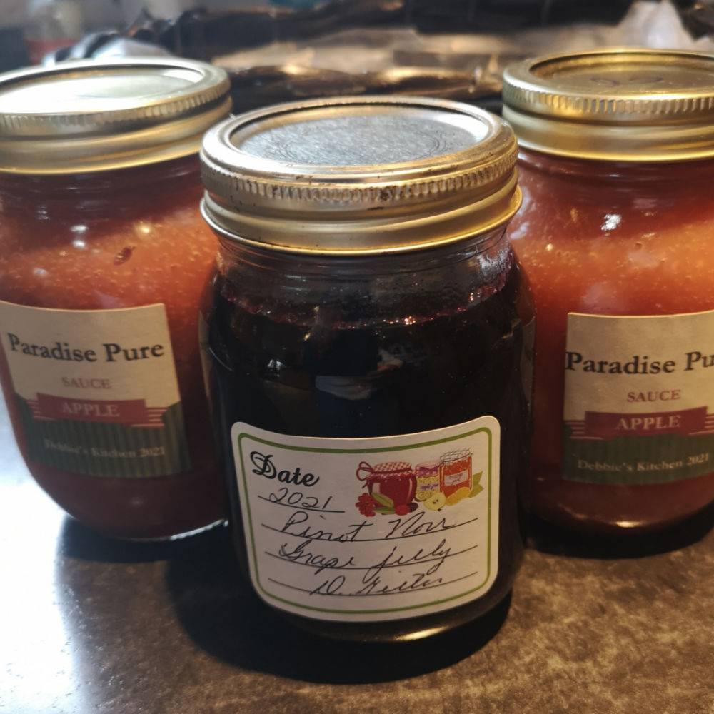 Organic apple sauce (2 pints) with no additives; one jar Pinot Noir grape jelly (no sprays)