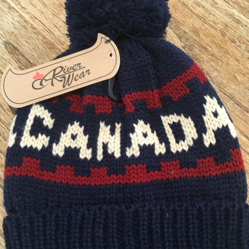 Navy, red, and white knit toque