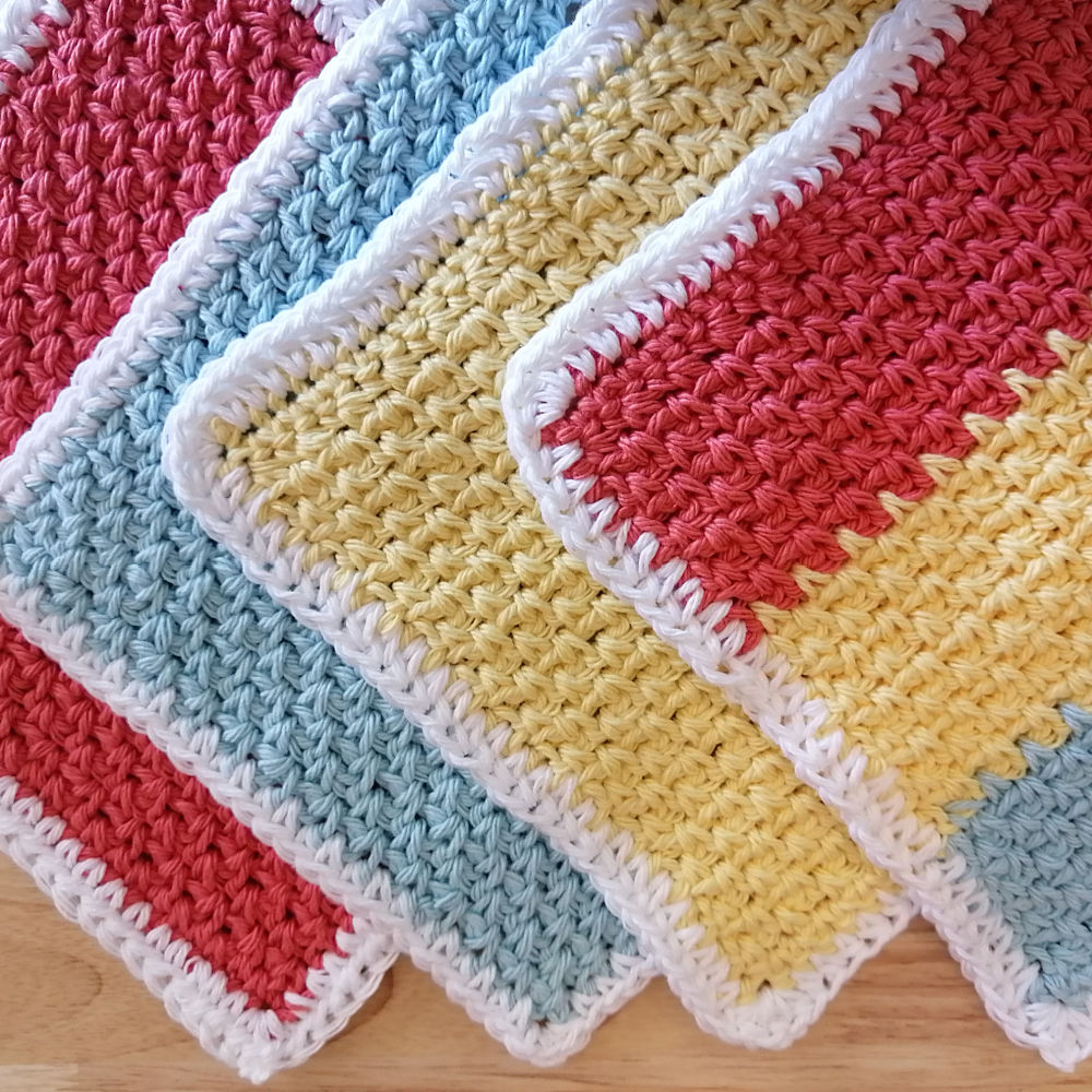 Set of four handmade (crochet) cotton dishcloths in spring colours
