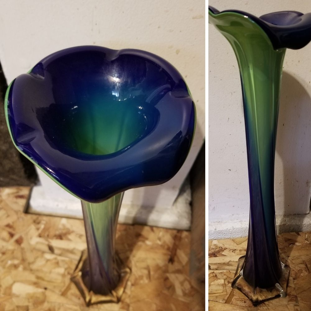 Blue and green glass vase; size 15.25″ tall