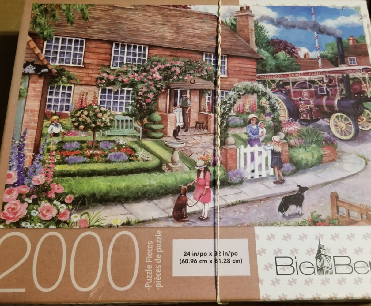 2000 piece puzzle; house with flower garden image