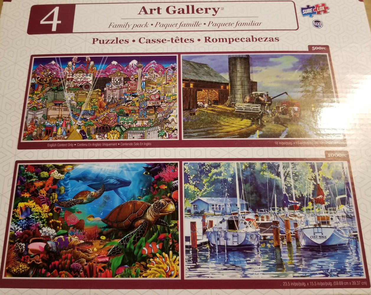 Family pack set of four puzzles (two puzzles are 500 pieces and two puzzles are 1000 pieces)