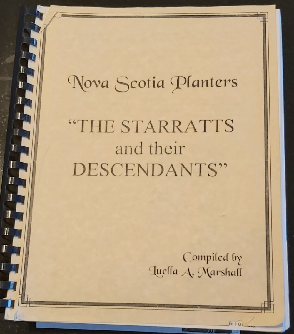 Gently used; A goldmine of information, edited and researched by Luella Marshall, about generations of many Nova Scotia families who came to the Annapolis Valley. The Starratts were one of the original Planter families in Paradise. Their descendants are in many places, and their family tree includes many families.