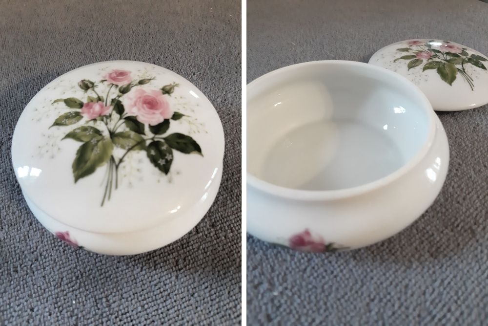 Trinket box with pink roses; size 4.5″ x 2″