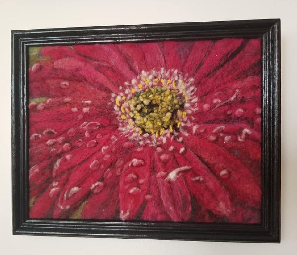 Needle felted wall hanging made from a photo by Debbie Gillis; size 8″ x 10.5″
